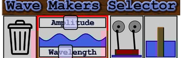 Now try adding an object to the tank. There are "active" objects which actively causes disturbances on the water surface all by themselves, and "passive" objects which act as barriers, stopping the disturbances. These types of objects can be added by touching on the controls under the "Wave Makers Selector" heading at the bottom of the screen.